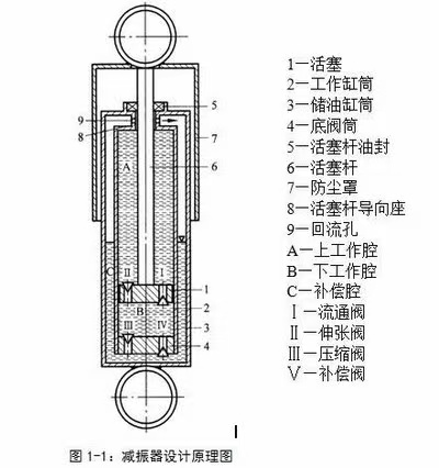 1.活塞与活塞杆:连接车轮与车身,随振动上下运动。